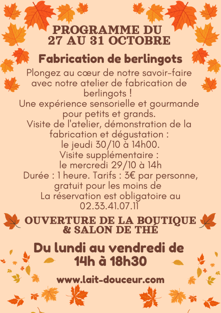 Ouverture de la boutique / salon de thé de Lait Douceur à St Sauveur Le Vicomte : du lundi au vendredi de 14h-18h30